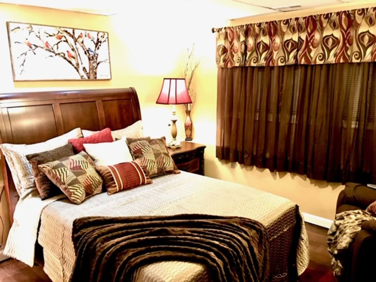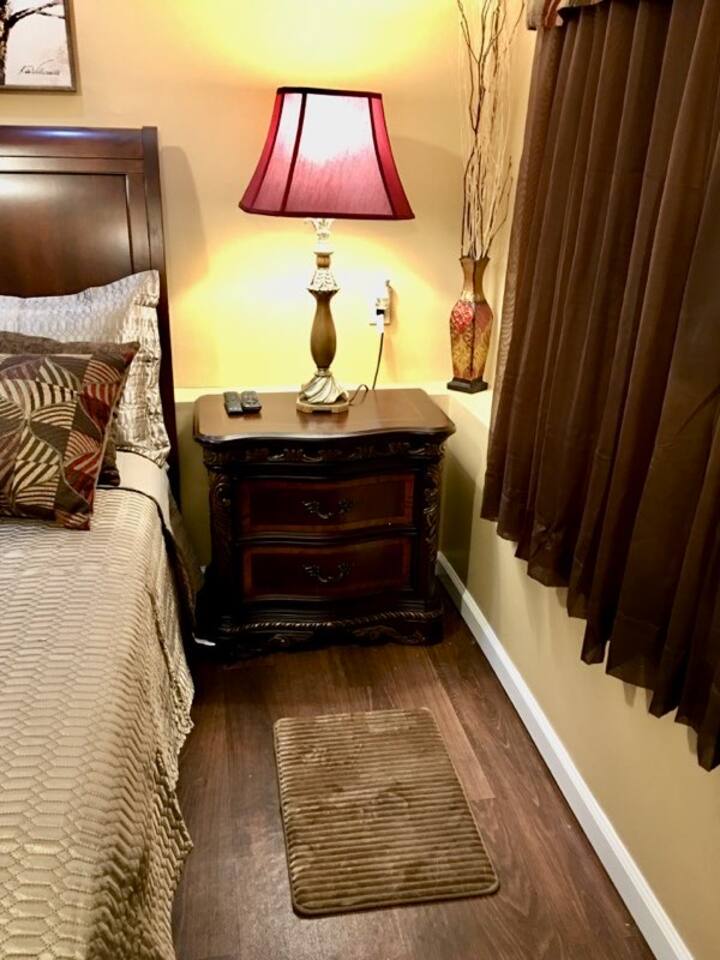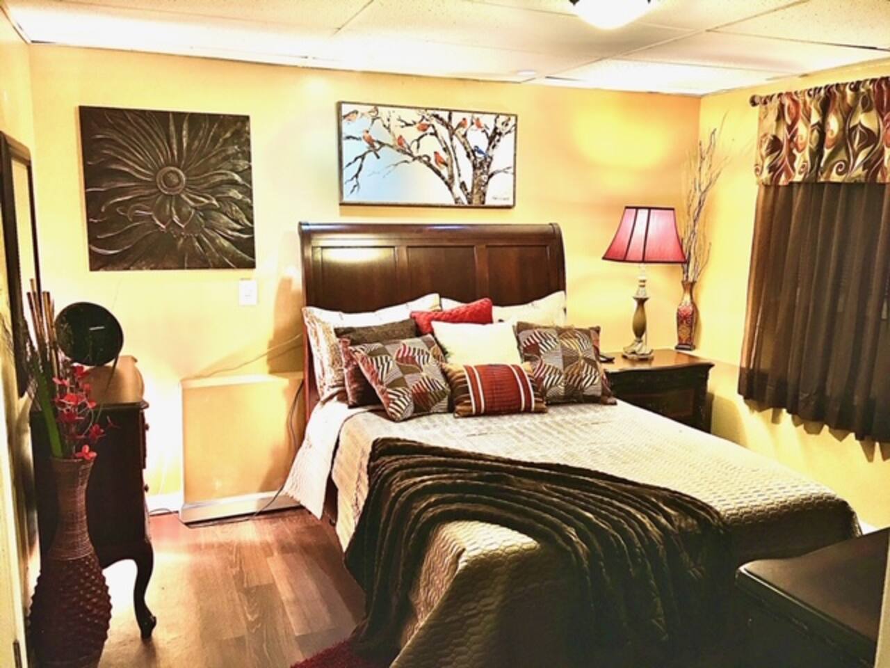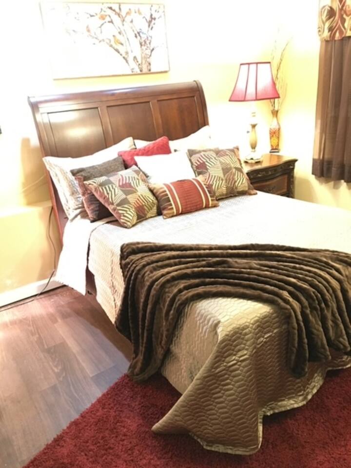 This lovely home is located in the quiet and quaint Carrington neighborhood. Built in the 1980s, this cozy home has charming decor that creates a warm guest space. The room is quite cozy! The interior design has character. It is suitable for longer stays.