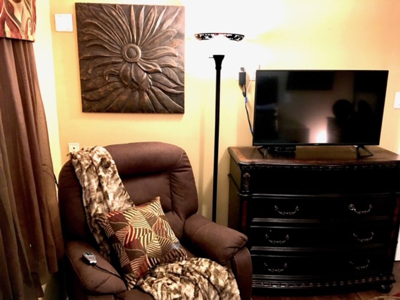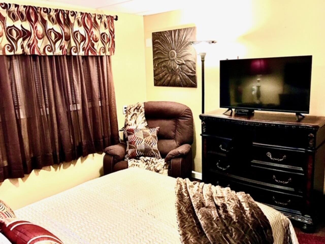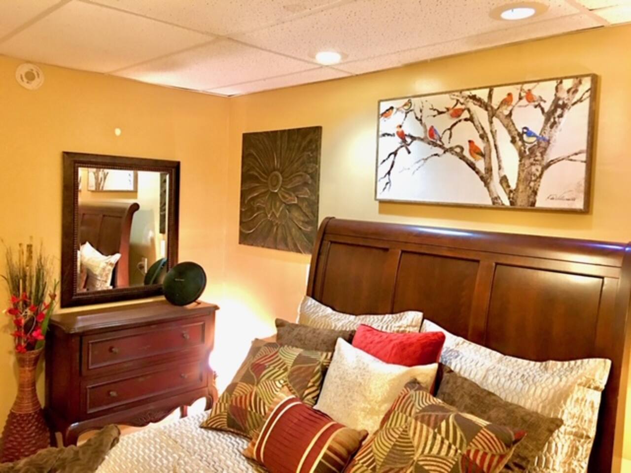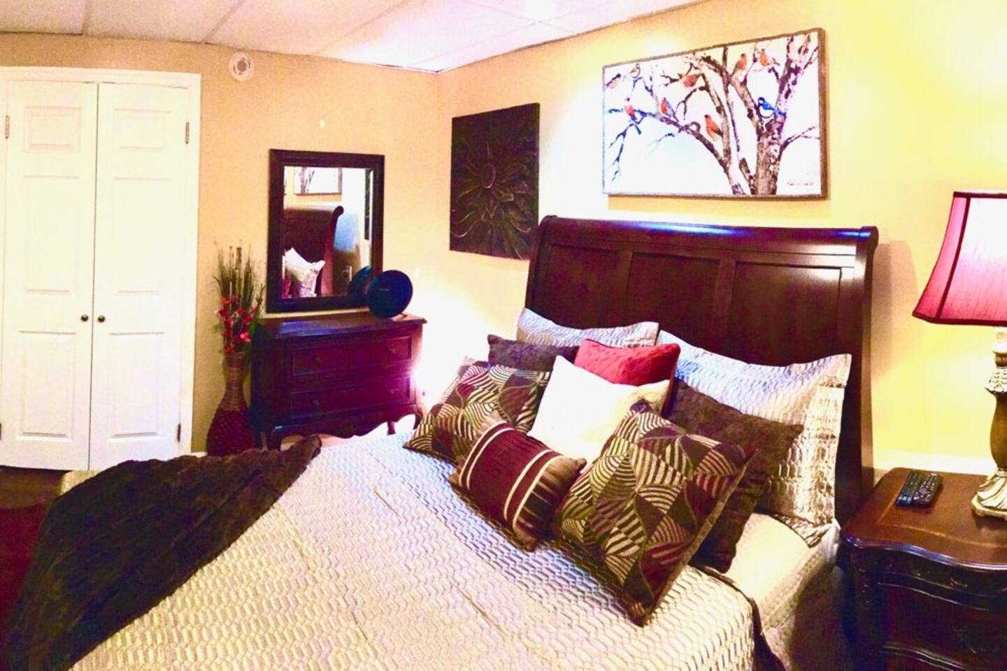 This lovely home is located in the quiet and quaint Carrington neighborhood. Built in the 1980s, this cozy home has charming decor that creates a warm guest space. The room is quite cozy! The interior design has character. It is suitable for longer stays.