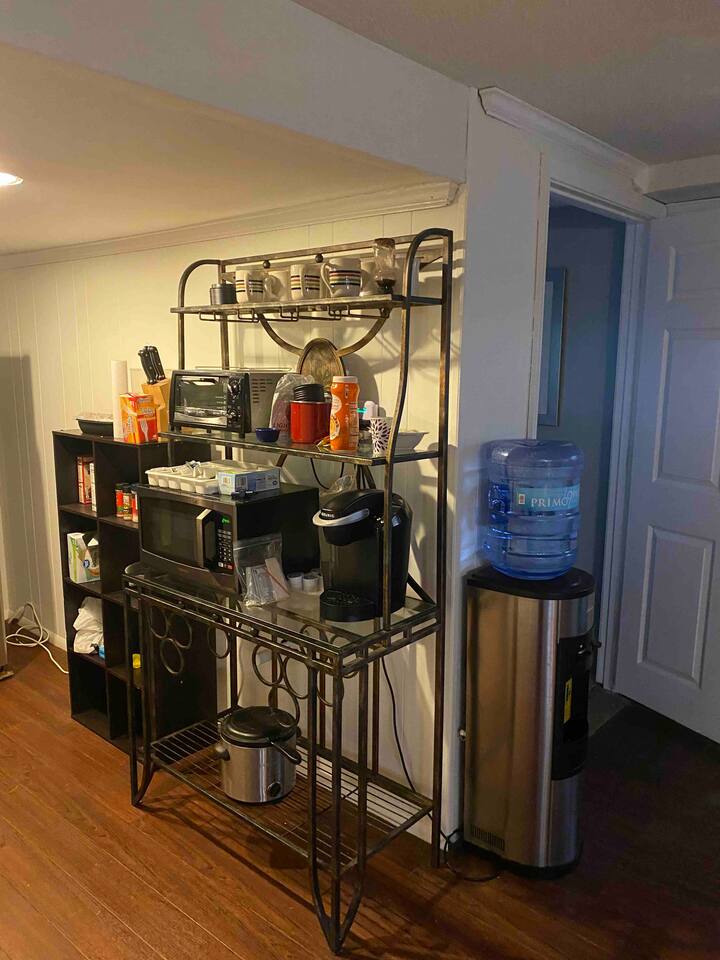 There is no full kitchen use. Kitchenette available downstairs. Laundry room only available to long term guests, more than 5 days: