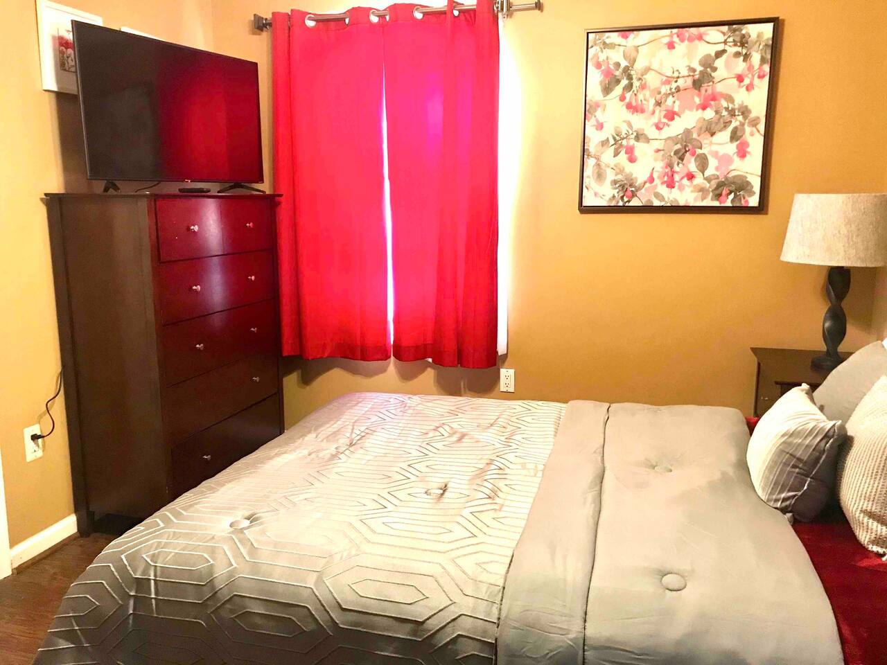 Guest has access to bedroom, kitchen, dining rooms, living room, and shared bathrooms. The home is shared by working professionals and tourists. No children or pets allowed at this location.